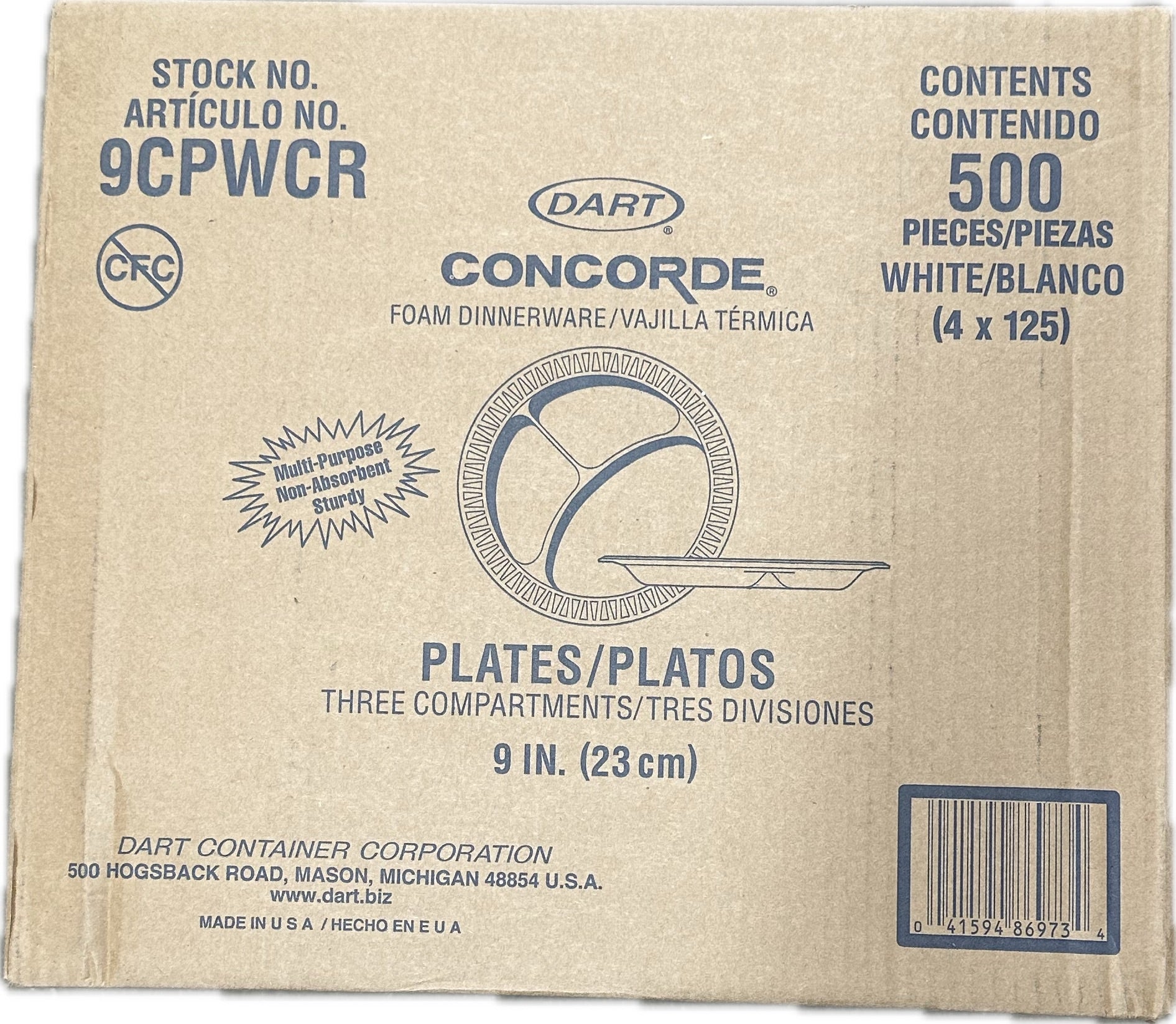 PLATE 9inch 3 COMPT. DART 4/125ct